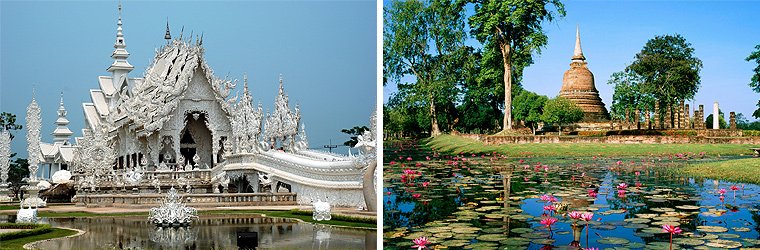 苏科泰历史保护区占地70平方公里,沿着耶姆河的左岸延伸,保护着这座古老首都留下的数百座半毁的建筑遗迹,其中包括著名的西丘姆寺和坐姿佛像。在距离曼谷33公里处的芒博兰公园里,整个王国的版图以及所有最著名的历史遗迹都被还原再现了出来。