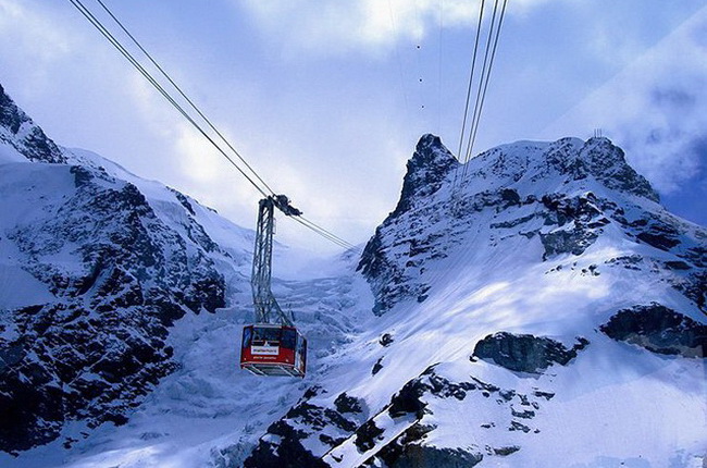 自从有了缆车车厢,克莱因马特霍恩山就不再难以攀登了。