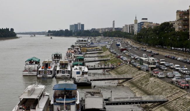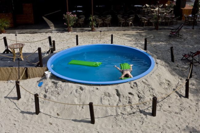 不建议在多瑙河里游泳,所以当地人会搭建人造海滩: