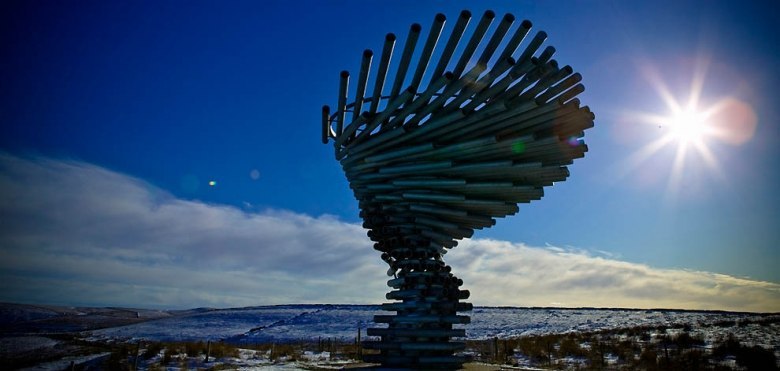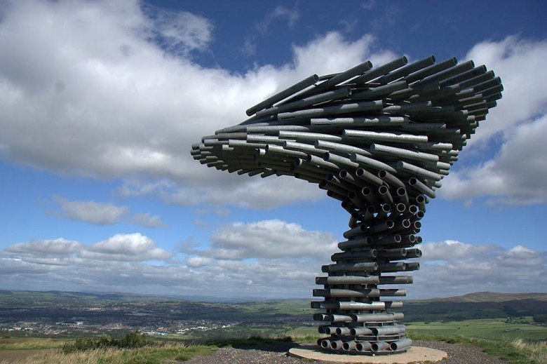 在距离英国伯恩利镇不远的山上,你可以看到一个由金属管制成的奇特景观。这就是会唱歌的树,每当有风吹过,它就会发出声音。这棵树的高度超过了3米,金属管被螺旋状地缠绕在一起,使得它看起来更加壮观。由于管道从树顶逐渐变细,因此发出的声音也会不断变化。