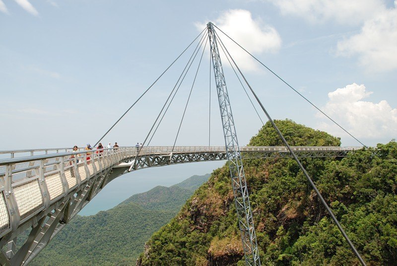 这座位于马来西亚的悬索桥堪称一项独特的工程奇迹,它环绕着一根高度为87米的金属支柱建造而成。共有8根缆绳从这根支柱上延伸出来,支撑着桥梁的行人通道部分。站在桥上时,那种令人不寒而栗的感觉会因为支柱本身并非垂直于地面而是略微倾斜而变得更加强烈。站在桥上,您将能够欣赏到世界海洋中最美丽的群岛之一——那里分布着数百座小岛和微型海湾。据当地居民称,这座桥自2004年以来一直运行良好,而且非常安全。它的海拔高度为685米。