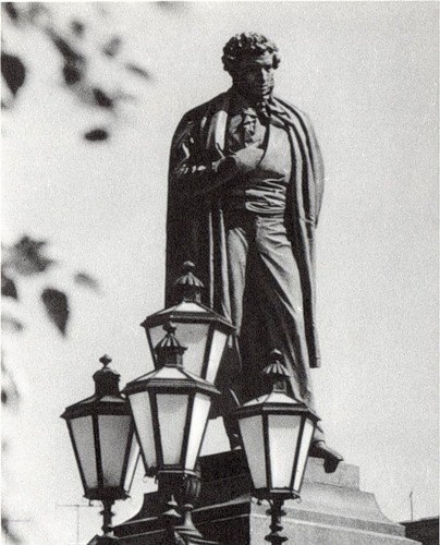 The monument to Alexander Pushkin was created by sculptor Alexander Opekushin. It depicted the poet in a state of deep contemplation: his head tilted back, one hand resting on the lapel of his coat, his steps slow and deliberate.