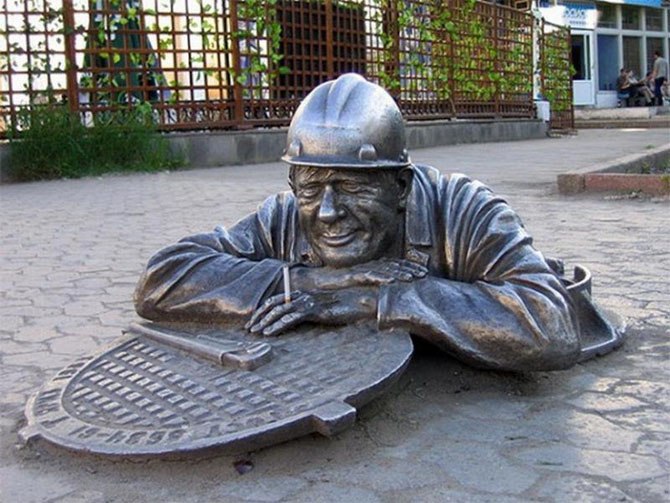 Many monuments in Russia are dedicated to public services. For example, the “Plumber Stepanovich” Monument in Omsk: The steel-plated plumber Stepanovich, peeking out from a manhole on Lubinsky Prospekt, has become a symbol of the city and a favorite among its residents. Many people even offer him cigarettes as they pass by… This monument is actually a copy of one in Bratislava.