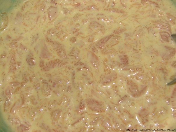 将鸡胸肉切成小块,然后加入2个鸡蛋、盐、少许牛奶和面粉,搅拌均匀。让面糊静置10分钟,使其达到制作普通煎饼所需的浓度。如果面糊过于稀薄,可以再添加一些面粉并继续让其静置。