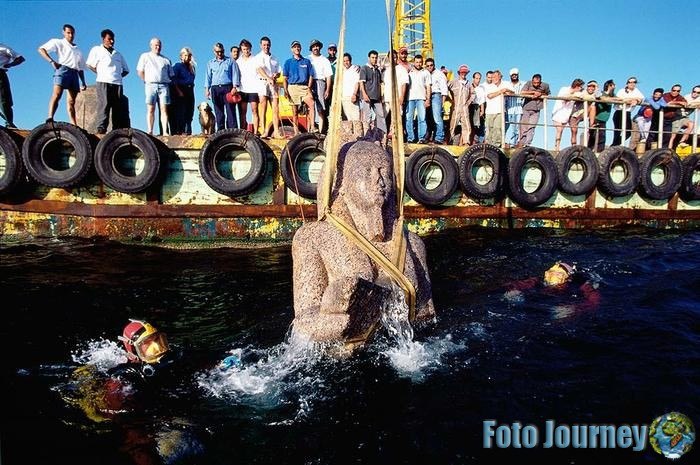 法国考古学家弗兰克·戈迪奥在去年夏天宣布,他发现了疑似属于赫拉克利翁的城市遗迹。其中包括一块刻有“赫拉克利翁”字样的黑色花岗岩石板,以及位于昔日港口处的十艘沉船的残骸,还有数千件其他文物,包括珠宝、硬币、陶器和个人物品等。
