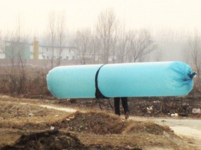 这个六米长的塑料袋里装满了来自中国山东省滨州市的天然气。这些袋子被连接到炉子上,用来烹饪食物。据当地居民说,这样的燃气量足够使用五天时间。
