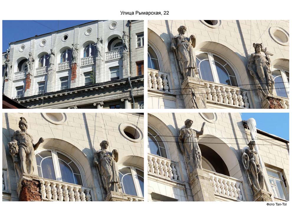 Die Fassade auf der Seite der Rymskaja-Straße (N22) ist ebenfalls im Stil des Neoklassizismus gehalten.