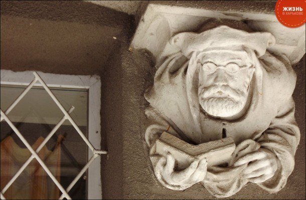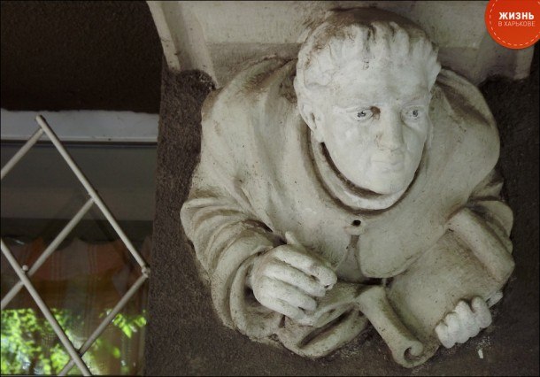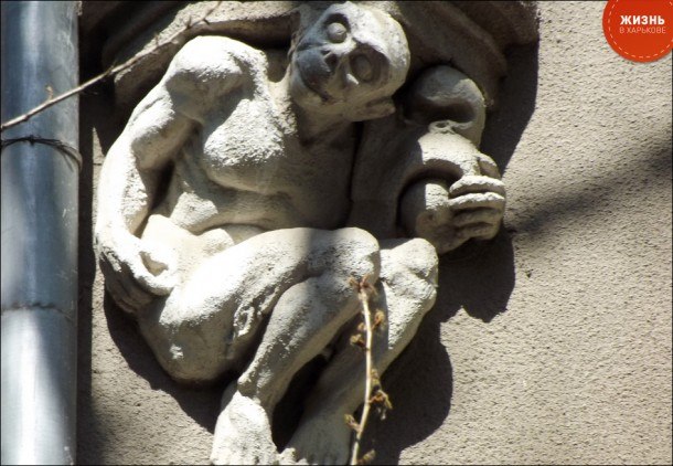 79 Chernyshevskaya Street. Surely everyone has heard of this famous creation of architect V. Gorodetsky – the unique mansion in Kyiv on Bankovaya Street, known as the House of Chimeras. This house earned its name due to the sculptural decorations on its facade and inside, which feature mythical creatures from both land and marine worlds, as well as elements related to hunting. However, few people know that Kharkov also boasts several houses adorned with similar chimera sculptures. Although they are not as well-known as their Kyiv counterpart, and do not contain as many such decorations, they are just as interesting. The first such house in Kharkov was built 11 years after the one in Kyiv, in 1914, in the same Art Nouveau style with elements of English Gothic architecture, just like Gorodetsky’s mansion. The architects behind this building were V. Pokrovsky and P. Velichko. It is located in a quiet area of Kharkov’s center, at 79 Chernyshevskaya Street. There is still some confusion regarding the origin of the street’s name: it was originally named after the owner of the estate that used to stand at the site of the current building at number 1. During the Soviet era, it was renamed in honor of the Russian writer N. G. Chernyshevsky, despite his having no connection to this city. Recently, the street was given its historical name back, but not all street signs have been updated accordingly. V. Pokrovsky, who served as the chief architect of the Kharkov Diocese, designed this six-story mansion, which was originally intended to serve as a private women’s gymnasium for his sisters. The women’s gymnasium operated until 1920; afterwards, the building housed the No. 62 eighth-grade school, which was closed in 1962 due to its dangerous proximity to a nearby tuberculosis clinic. From 1973 until its closure in 1995, the building was used as an evening school for working youth. For nearly fifteen years, the house stood abandoned and boarded up; later, it was donated to the Theater Faculty of the Kotlyarevsky University of Arts. For several years, the building underwent restoration work, with students playing a crucial role in this process. The final repairs and restorations were carried out in the 1990s, during which the original facade, adorned with bizarre sculptures of chimeras, was carefully restored. According to encyclopedias, the word “chimera” originates from the Greek language and means “goat”; it refers to a mythical creature with the head and neck of a lion, the body of a goat, and a snake’s tail. This creature was said to be born from the union of Typhon and Echidna. In the Middle Ages, gorgons were often considered chimeras as well. In modern times, the term “chimera” is often used to refer to monsters and mutants of all kinds, as well as unrealistic dreams and fantasies. Sculptural representations of fantastic creatures are a common feature of Gothic architecture, especially in cathedrals like Notre-Dame de Paris. The Kharkov mansion is unique because it is not only adorned with chimeras but also with the heads of its creators, architect Pokrovsky and his assistant Velichko. In this way, the Pokrovsky sisters honored their brother, the designer of this building, and his close collaborator. Interestingly, these changes to the original design were made at the sisters’ own initiative, without their brother’s knowledge. The sculptures of the architects—young Velichko on the right, depicted as a medieval scribe, and Pokrovsky wearing glasses on the left, portrayed as a professor—can still be seen today from beneath the second-floor balcony. Originally, Velichko held a stylus in his right hand to write in the book he held in his left hand; during the recent restoration, the stylus was broken, but students creatively replaced it with a cigarette, which is now used in place of the missing writing tool. The upper columns of the facade bear two sculptures of bent-human-like creatures; these once had no names, but they are now called “Gorlums” due to their striking resemblance to the fictional character Gorlum from J.R.R. Tolkien’s “The Lord of the Rings.” Modern students of the theater faculty have established a tradition of carefully maintaining the nails on the “gorslem’s legs” by regularly painting them with nail polish. In addition to the previously mentioned creatures, the facade of the house is also decorated with ordinary-looking wolves, salamanders, and knightly emblems.