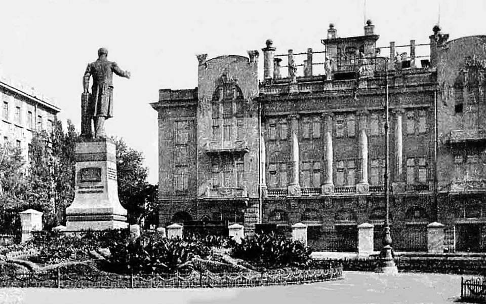 Arch. Tsaune Y.S. (1912): Ein Stil der Eklektik, der Merkmale der Klassik und des Modernismus verbindet. Im sehr hohen obersten Stockwerk befand sich das Geschäft des Händlers Aladyn. Die beiden oberen Stockwerke sind durch dreiviertelhohe Säulen miteinander verbunden. Das Gebäude ist mit Skulpturen im antiken Stil verziert. Unter dem Gesims befindet sich eine Balustrade; auf dem Dach gibt es einen Sonnenterrassenbereich mit einem Turm, in dem ein Sommercafé untergebracht war. Adresse: Sumskastraße 44. #Kharkov #Charkiw #Kharkovgo #1stolica_history
