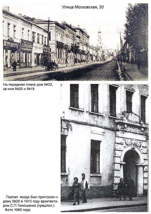 Im Jahr 1913 befand sich an der Adresse Moskowskaja, 18 das „Handelshaus E.W. Gorbunow“. Laut dem Adressbuch VCH-1925 befand sich in dem Gebäude Nr. 20 das 1. Arbeitertheater des Proletkulturniks. In den 1930er Jahren wurden die Gebäude (oder vielleicht beide – Nr. 18 und 20?) dem Ukrainischen Kommunistischen Institut für Journalistik übergeben; in dem Adressbuch VCH-1937 war die Adresse als Moskowskaja, 18/20 aufgeführt. Nach dem Krieg befand sich dort das Institut für Fremdsprachen. In den 1970er Jahren wurden diese Gebäude abgerissen, als man die neue Straße des Moskauer Prospekts anlegte. #Charkiw #Geschichte_Charkiws