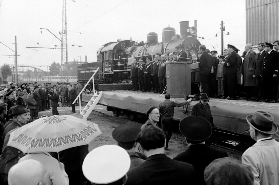 Gestern wurde auf dem Gelände des Elektrozugdepots „Schowten“ unter feierlichen Umständen ein weiteres Denkmal eingeweiht. Der Dampflokomotiv EU 677–49 hat seine letzten, „friedlichen“ Kilometer zurückgelegt und nimmt nun für immer einen ehrenvollen Platz auf einem Sockel – auf gewöhnlichen Eisenbahnschienen – ein. Man muss zugeben, dass nicht jedem Lokomotiv solche Ehren zuteilwerden. Diese hier hat sie verdient. Ihre Kampfgeschichte begann im Juli 1942 am Bahnhof Oserelije (im Vorort von Moskau). Genau dort wurde die Dampflokomotivenkolonne Nr. 10 des Sonderreserves des Volkskommissariats für Verkehr aufgestellt; sie bestand aus Eisenbahnern der Südlichen Magistrale. Die Lokomotiv EU 677–49 gehört zu den wenigen, die trotz Schäden durch Bombenangriffe feindlicher Flieger weiterhin treu ihren Dienst verrichteten. Stalingrad, Orel, Rostow, Kursk, Belgorod, Charkiw, Kiew, Breslau an der Oder (heute Wrocław), Berlin – so verlief der Kampfweg der 10. Dampflokomotivenkolonne. Auch die Maschinisten Alexander Grigorowitsch Jakowlew und Iwan Iwanowitsch Bobrischew fuhren mit dieser Lokomotive, die ab nun zu einem Denkmal für die heldenhaften Taten der Eisenbahner der Südlichen Magistrale in den Jahren des Großen Vaterländischen Krieges geworden ist. Bei der Feier sprachen unter anderem die Leiter der ehemaligen 10. und 34. Dampflokomotivenkolonne, F. J. Estis und S. F. Wassilenko, der Maschinist I. I. Bobrischew, der Leiter der Südlichen Eisenbahn M. S. Konarew, der Sekretär des Lenin-Rajons der Ukrainischen Kommunistischen Partei O. W. Skiba sowie der stellvertretende Minister des Verkehrsministeriums der UdSSR P. K. Lemeschuk. Die Jubilääre sowie die Mitglieder der ehemaligen Dampflokomotivenkolonnen der Südlichen Magistrale wurden von Pionieren und Schülern der 23. Eisenbahnschule herzlich zum Feiertag des großen Sieges gratuliert.