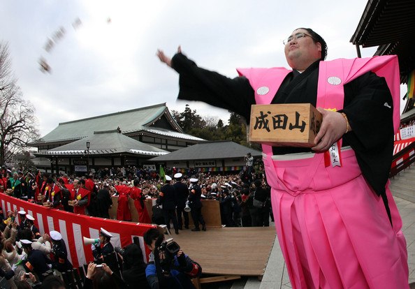 „Sie sind hundert! Fuку weg, Uti komm!“ Dieser mehrstimmige Ruf ertönt unweigerlich in Tempeln, auf Plätzen und speziell eingerichteten Flächen sowie in den Häusern der Japaner am 3. Februar. „Böser Geist, geh aus dem Haus! Glück, komm ins Haus!“ bedeutet dies3 Fotos
