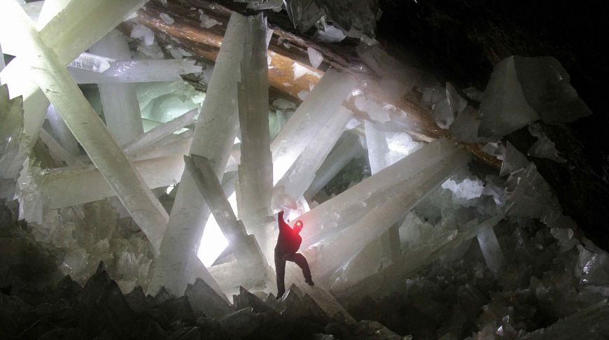 At a depth of 300 meters under the city of Naika in Mexico is a cave of crystals. The largest crystal found here reached a height of 11 meters and had a width of 4 meters. You can stay inside the cave for no longer than 20 minutes, as the temperature in it can rise to 60 degrees.