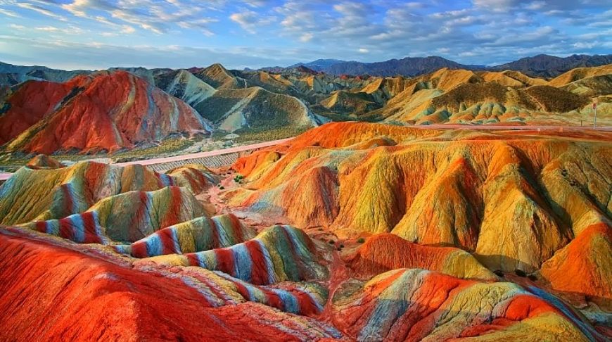 In the Chinese province of Gansu is the National Geopark Zhangye Danxia, whose main attraction is — colored rocks. Formed by deposits of sandstone and other minerals, they reach a height of several hundred meters.