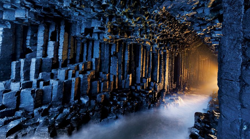 The cave washed in the rock is on the Scottish island of Staffa. Its walls are vertical basalt columns up to 20 meters high. For boats, the entrance to the cave is too narrow, so you can only get to it on foot along the edge above the water.