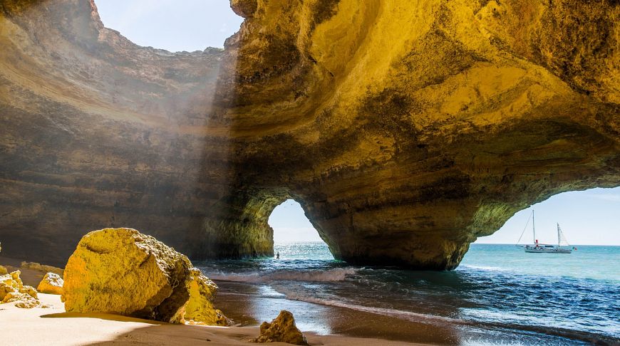 Located on the beach of the Portuguese region of the Algarve, this cave at the expense of its arch with holes creates an amazing view. Especially at times when the rays of the sun pass through them.