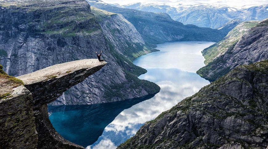 The stone ledge on the rock of Skieggedal, near the Norwegian city of Odda, has a similar name due to its unusual shape: it looks like a big tongue. And in fact it is a fallen piece of rock, horizontally frozen on its edge.