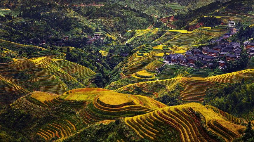 The most famous rice terraces of China Longji Rice Terraces due to their unusual shape are called the Dragon Ridge & raquo ;. They are located near the county of Guilin and rise over the sea for 300-1100 meters. The most spectacular sight this place gets in the spring, when the blue sky and the sun reflect in the water.