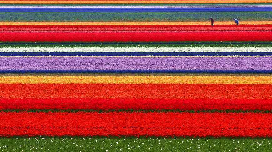 The flower fields in the Netherlands occupy huge areas, and therefore look so fabulous. The largest number of tulips blooms from the beginning of April to the middle of May — at this time you can see an incredible riot of colors!