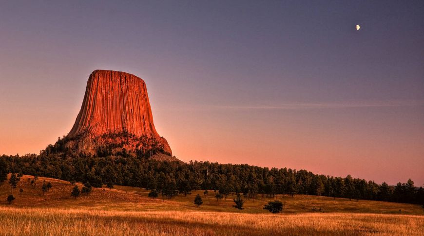 The natural monument of Devils Tower is located on the territory of the state of Wyoming and is a monolith of volcanic origin with a height of 386 meters. It is estimated that his age is — from 195 to 225 million years.