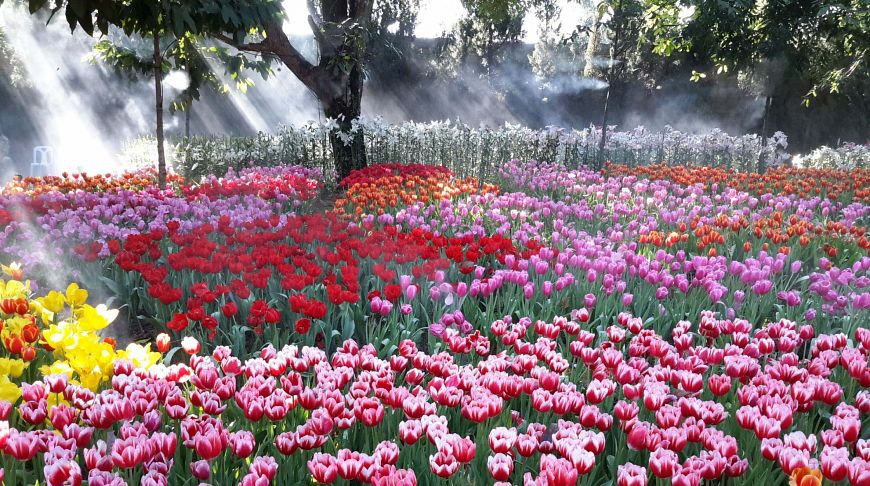 In January, on the streets of Chiang Rai, there is a large Flower and Music Festival. Florists prepare live stands from thousands of tulips, and musicians perform directly on the flower fields.
