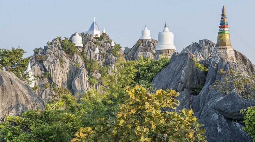 Mountain stupas Wat Chalermprakiat Prajongklao Rachanusorn in Lampang
