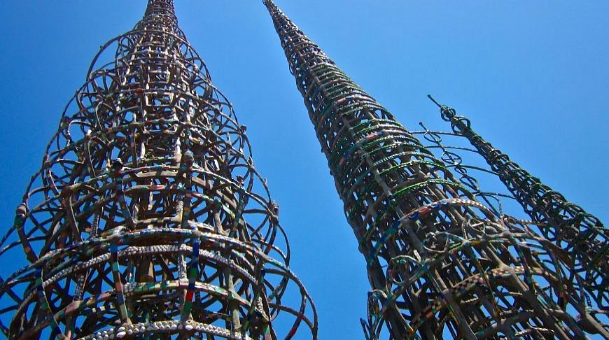 And the last, but by no means the most boring thing you can see in Los Angeles, โ it's the Watts tower. 17 towers up to 30 meters in height are made of a variety of materials: from tiles and glass to pieces of porcelain picked up during walks. Their creator, Simon Rhodia, worked on the creation for 33 years in the courtyard of his own house. Many considered him an eccentric and obstructed construction. But now Watts Towers are considered one of the symbols of Los Angeles and recognized as a national historical monument.