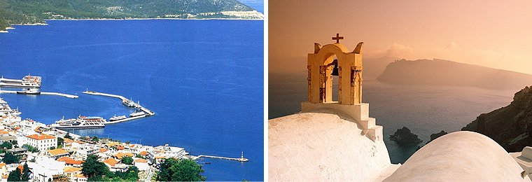 Corfu, Rhodes, Mykonos, Santorini, Kos, Patmos, Tilos, Paros, Poros, Zakynthos, Kefalonia, Lefkada, Skiafos, Skopelos, and others.
