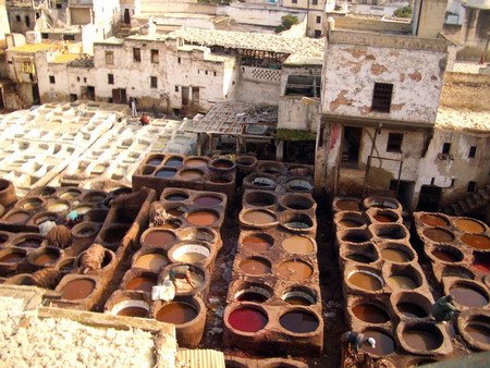 The traditional Moroccan craft of leather coloring.