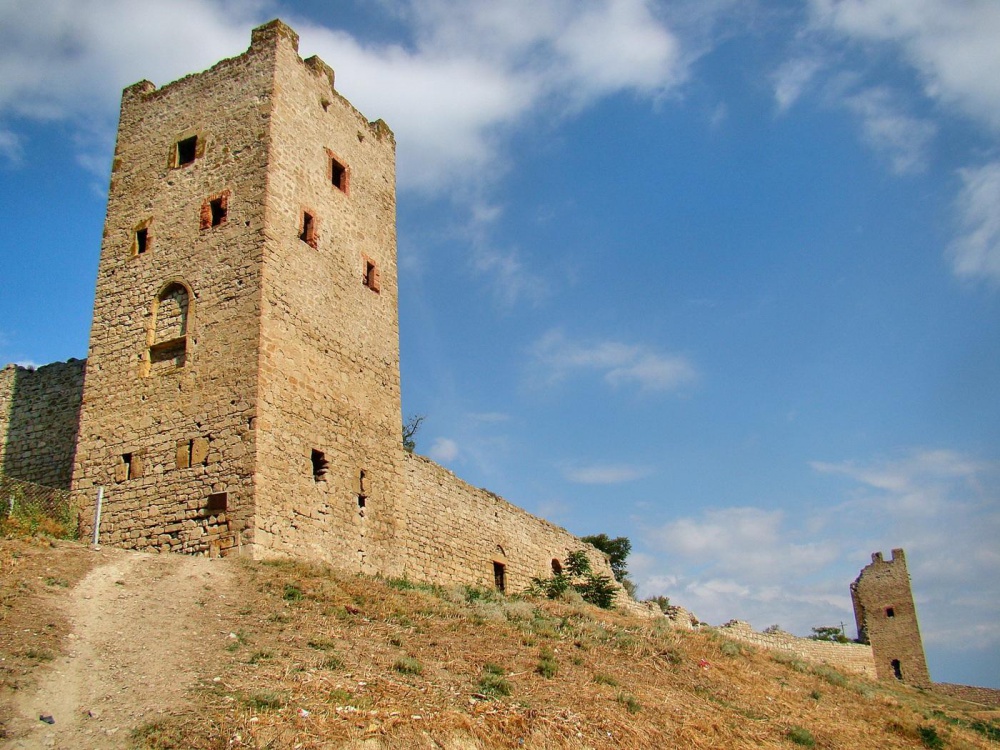 Construction of the XIII - XIV century. In 1226 Genoese merchants bargained from the Tatar khan Oran-Timur Feodosia's ruins and in their place built the fortress of Cafu, which became the center of the Black Sea possessions of Genoa. Quite soon the fortress of Kafa turned into the largest transit center of international trade and a stronghold of the Genoese colonies in the Black Sea region. Through Cafu to Europe, wheat, eastern spices, gold and precious stones were exported. The city was vast and rich. In the port stood hundreds of merchant galleys. The quay sometimes was not enough for arriving ships. I heard the multilingual dialect of dozens of nationalities: here lived the Greeks and Italians, Armenians and Jews, Ukrainians and Bulgarians, Karaites and Tatars. Kafa was a city of the slave trade. Historical documents indicate that in the XII-XV centuries Kafa was the center of the slave trade in the Black Sea basin, its slave market is known both under the Genoese, and later in the Turks. The fortress of Kafa, the second largest after the fortress of Thessaloniki in Greece, wasbut one of the most powerful in Europe. The fortress had two lines of fortifications: the citadel and the outer part. The citadel was erected in 1340-1343 years around the Quarantine hill, on steep slopes towards the sea, which could serve as a primary barrier for enemies, was completed for another ten years. The citadel is built of limestone on a lime mortar with carefully stitched seams. The building materials for the fortress were usually mined in places where rock formations came out on the slopes of the surrounding mountains or from the seabed. The length of the walls of the citadel was 718 meters, of which 469 m were preserved. The walls reached an altitude of 11 meters and 2 meters in width. The perimeter of the outer fortress was almost 5.5 kilometers and included more than 30 towers. Under the walls there was a deep ditch filled with water, serving as a defensive structure and as a channel for discharging storm sewage into the sea. In terms of the city fortress resembled an amphitheater, the scene of which was the Theodosia Bay. In the citadelthe consulate palace, the treasury, the residence of the Latin bishop, the court building with a balcony for the announcement of consular orders, offices for checking weights, warehouses and stores of especially valuable goods - precious stones, furs, silks. In the XIX century, most of the structures were dismantled. To this day, the southern wall of the citadel with two towers (the tower of St. Clement and the Tower of Crisco), a part of the western wall, pylons of the gate, several towers in different parts of the city (Dokova, Constantine, round) have been preserved. On the territory of the citadel there are also preserved a bridge, Turkish baths and several churches.