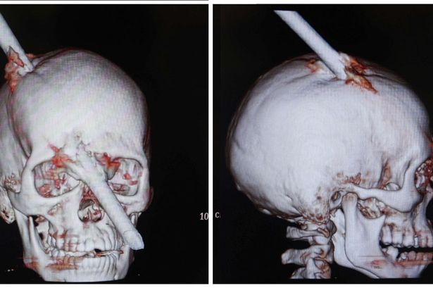 But fortunately, the brain was not touched. The rod was removed at the nearest hospital. No consequences were caused by this trauma.