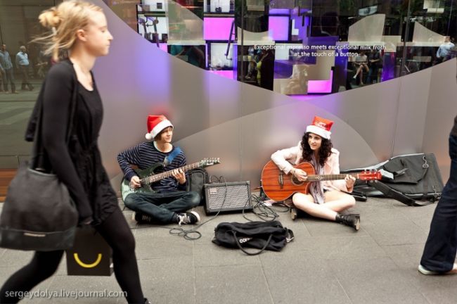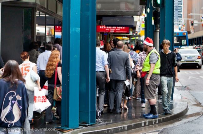 A huge number of cars were decorated with Christmas lights. Even though there was no snow, Sydneysiders did their best to create a festive atmosphere in the city: