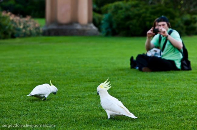 In Sydney, white parrots play the role that black crows usually do in other cities...