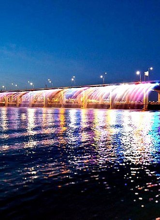 The bridge of Banpo, and its integral part - the Moon Rainbow fountain. Seoul. South Korea6 photos