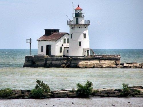 Lighthouse at the entrance to the harbor of Cleveland, Ohio: summer and winter photos