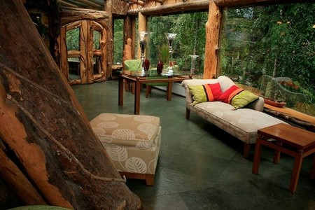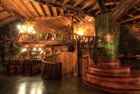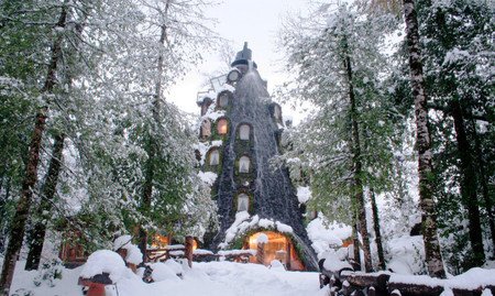 Entre los hoteles más originales del mundo, destaca de manera notable el llamado Magic Mountain Lodge, que significa «Cabaña en la Montaña Mágica». Este nombre se debe a una leyenda local según la cual, en los bosques vírgenes de la Patagonia, existe una montaña mágica que cumple los deseos de todo aquel que se encuentra en ella. En mi opinión, todo esto son mitos, pero hay que reconocer que el hotel, gracias a esta idea, resultó realmente impresionante.