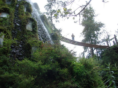 La entrada al hotel solo es posible a través de un puente colgante de madera.