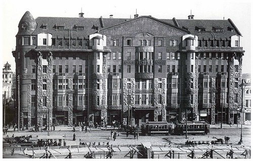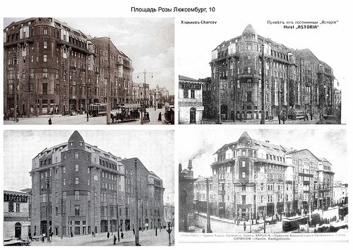 En el siglo XIX, la plaza fue rodeada por edificios de piedra de dos, tres y cuatro pisos. Uno de los primeros en aparecer fue un gran edificio de piedra de dos pisos perteneciente al comerciante Lamakin, construido en la esquina de la calle Pletnevsky por el arquitecto provincial P. A. Yaroslavskiy. Este edificio era considerado uno de los mejores de la ciudad. En 1816 y 1820, se reservaron en él habitaciones para el emperador Alejandro I durante sus visitas a Járkov. En 1870, el banco comercial de la ciudad adquirió el edificio de los herederos de Lamakin, estableciendo allí su oficina y alquilando algunas de las habitaciones. Entre 1888 y 1891, la Biblioteca Pública se instaló en varias habitaciones del segundo piso, ya que en ese momento aún no contaba con su propio edificio. En 1908, el edificio fue declarado en estado de ruina y demolido; posteriormente, entre 1909 y 1913, se construyó un nuevo edificio multifamiliar en estilo modernista, según los diseños de los arquitectos N. V. Vasiliev y A. I. Rzepishevsky. Una característica distintiva de este nuevo edificio fue la utilización, por primera vez en Járkov, de estructuras de hormigón armado, lo que permitió utilizar el interior espacio de manera flexible and adaptable a diversas necesidades. En la planta baja se encontraban el banco y varios tiendas; en los pisos segundo y tercer, oficinas erían alquiled para distintas empresas y organizaciones; y en los pisos superiores, se ubicaba el hotel «Astoria». #Járkov #Kharkov #Historia_de_Járkov #1stolica_history
