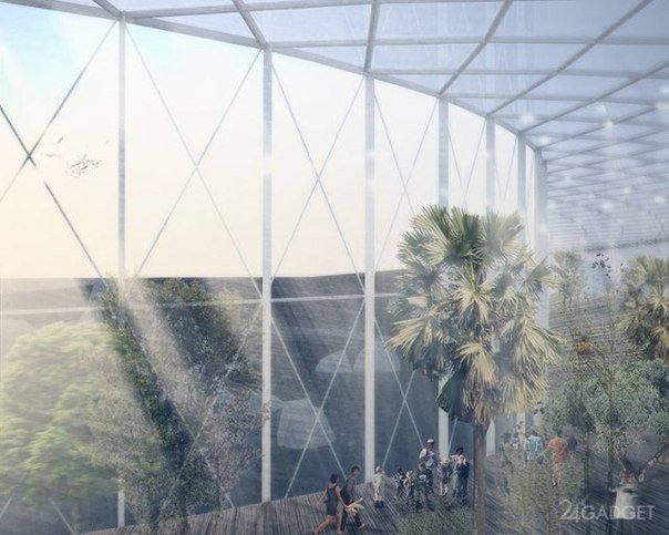 Recuerdan la película “El mundo acuático”, en la que un grupo de personas vivía en medio del océano, en una pequeña isla artificial en forma de anillo? Dos estudiantes arquitectos franceses tomaron esta misma idea como inspiración para crear su propio proyecto. Decidieron diseñar una ciudad flotante llamada Arctic Harvester, cuya autonomía se aseguraría gracias a una gran superficie de paneles solares que proporcionarían energía eléctrica y agua dulce, obtenida a partir de los icebergs. Precisamente por esta razón se eligió el formato circular. Según los diseñadores, este concepto permitiría a la ciudad flotante capturar enormes bloques de hielo y almacenarlos dentro de su estructura, mientras viajaba por el océano. El agua dulce y la electricidad generada permitirían cultivar huertos dentro de esta estructura, lo que aseguraría el abastecimiento alimentario de una población de aproximadamente 800 personas. Esta idea puede resultar interesante y prometedora, pero todavía hay mucho trabajo por hacer antes de que se pueda convertir en realidad.