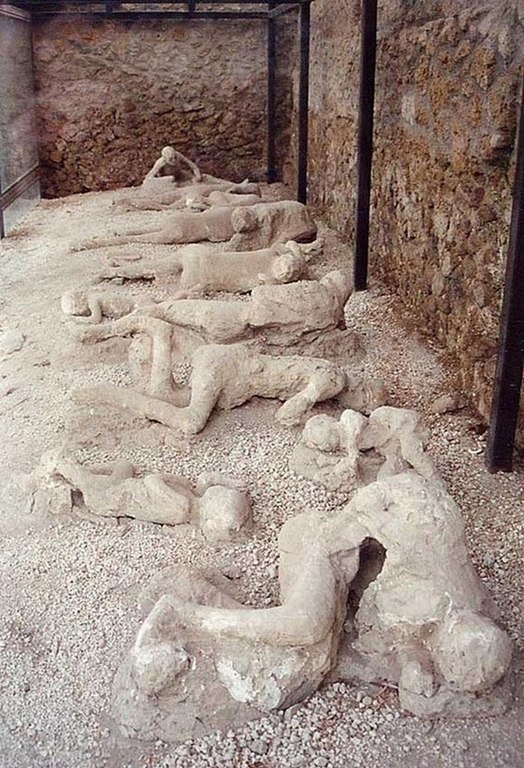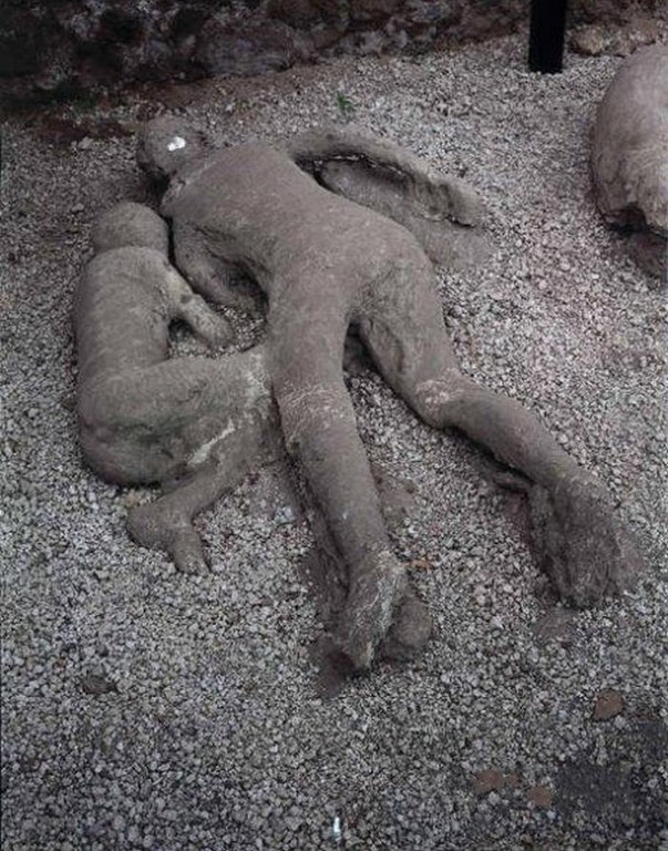 Un siglo después de la catástrofe, arqueólogos que realizaban excavaciones encontraron una increíble cantidad de restos de los habitantes de Pompeya, en forma de estatuas de piedra cubiertas con ceniza del Vesubio. Se hallaron grupos enteros de personas que se habían escondido con la esperanza de evitar la muerte.