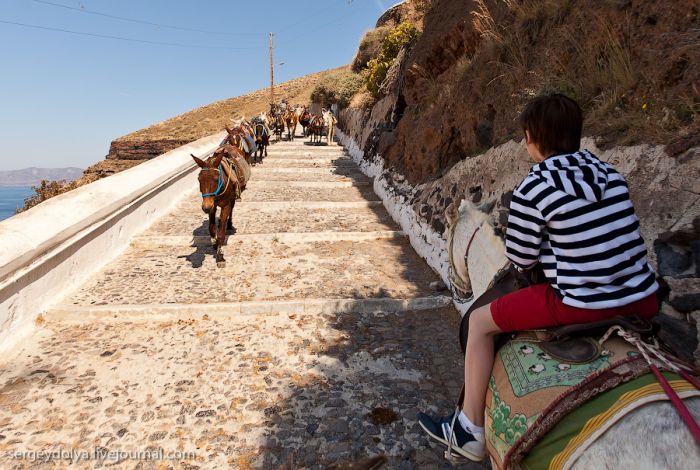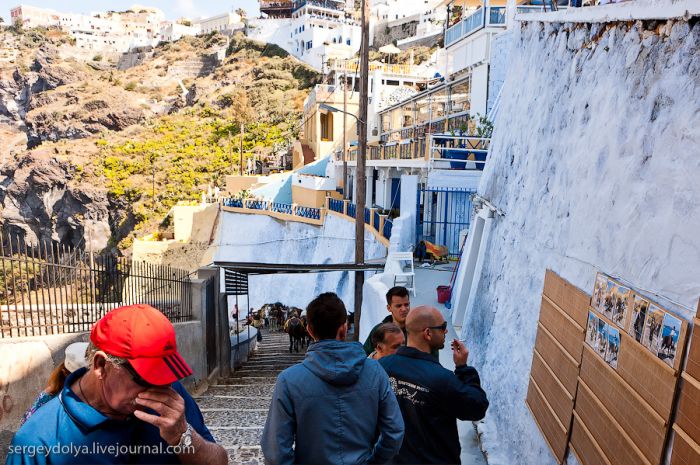 Au milieu du chemin, un photographe nous a pris en photo ; quand nous sommes arrivés en haut, nos photos étaient déjà prêtes. Le trajet en âne coûtait 5 euros, et une photo, 10 euros :
