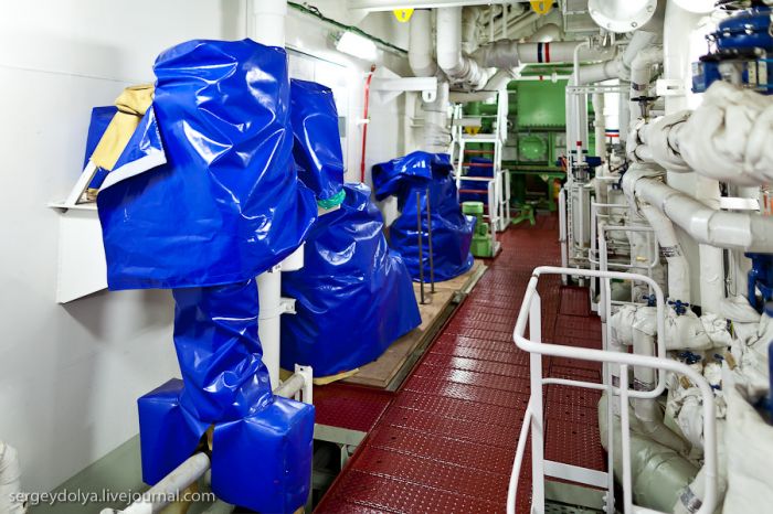 Chaque jour, des tonnes de linge de lit et de vêtements des passagers sont lavés à bord. Pour cela, il y a plusieurs gros appareils installés dans les ponts inférieurs, lors de la construction du navire…