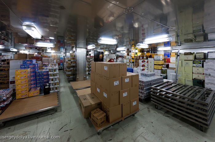 Chaque 12 jours, de nouveaux produits frais sont livrés à bord. Certains sont achetés dans les ports locaux, mais la plupart proviennent des États-Unis…