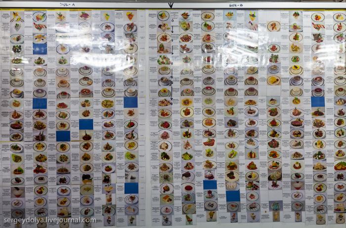 Les différentes options de plats sont affichées sur le mur. Le plat le plus cher est “Surf and Turf” : un morceau de viande de bœuf juteuse et un homard dans le même plat. Servir ce plat coûte 7000 dollars à la compagnie de croisières…