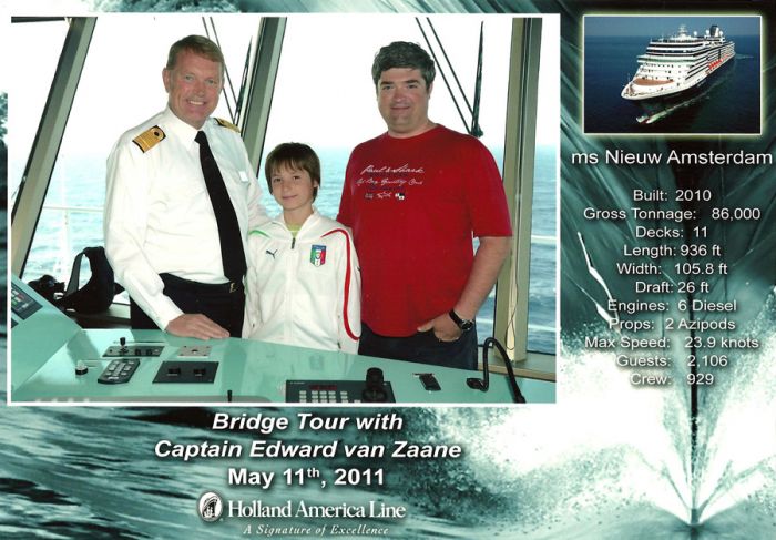 Avant de partir, nous avons pris une photo avec le capitaine, qui nous a offert une bouteille de vin rouge signée par tous les officiers supérieurs de l’équipage…