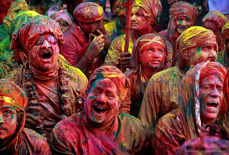 C'est une fête religieuse célébrant l'arrivée du printemps en Inde, appelée aussi « la fête des fleurs ». Sa splendeur chromatique peut rivaliser avec le carnaval de Rio de Janeiro. Chaque année, des milliers de personnes partagent un repas ensemble avant de danser rituellement vêtues de leurs costumes traditionnels. Selon la légende, le dieu hindou Krishna rendit visite à sa compagne Radha et se mit à la taquiner en lui jetant des fleurs. Radha et ses amies chassèrent le dieu, menaçant de le frapper avec des bâtons en bambou. Pendant Holi, les hommes incarnent traditionnellement les amis de Krishna : ils poursuivent les femmes en leur jetant de la poudre colorée et des pétales de fleurs. En retour, les femmes les menacent en plaisantant avec leurs bâtons.