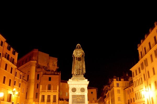 qu'il était erroné les conceptions scientifiques de l'Église. Giordano commença alors à prendre la parole en public lors de débats un peu partout en Europe, dénonçant l'ignorance de l'Église. À son retour en Italie en 1592, Bruno fut arrêté et emprisonné. La raison de son arrestation ne résidait pas tant dans l'idée elle-même de l'infinité de l'univers et de l'existence de nombreux mondes habités que dans le fait même de se moquer des fondements de la foi. Une détention de huit ans n'a pas modifié les convictions de Giordano, et les tortures n'ont pas brisé sa croyance en la justesse de ses opinions. Au lieu de renoncer à ses idées, Giordano Bruno préféra le bûcher. Le 17 février 1600, sur ordre du tribunal de l'inquisition à Rome, il fut brûlé sur la place Campo di Fiore. Ses dernières paroles furent : « Brûler ne signifie pas réfuter ».