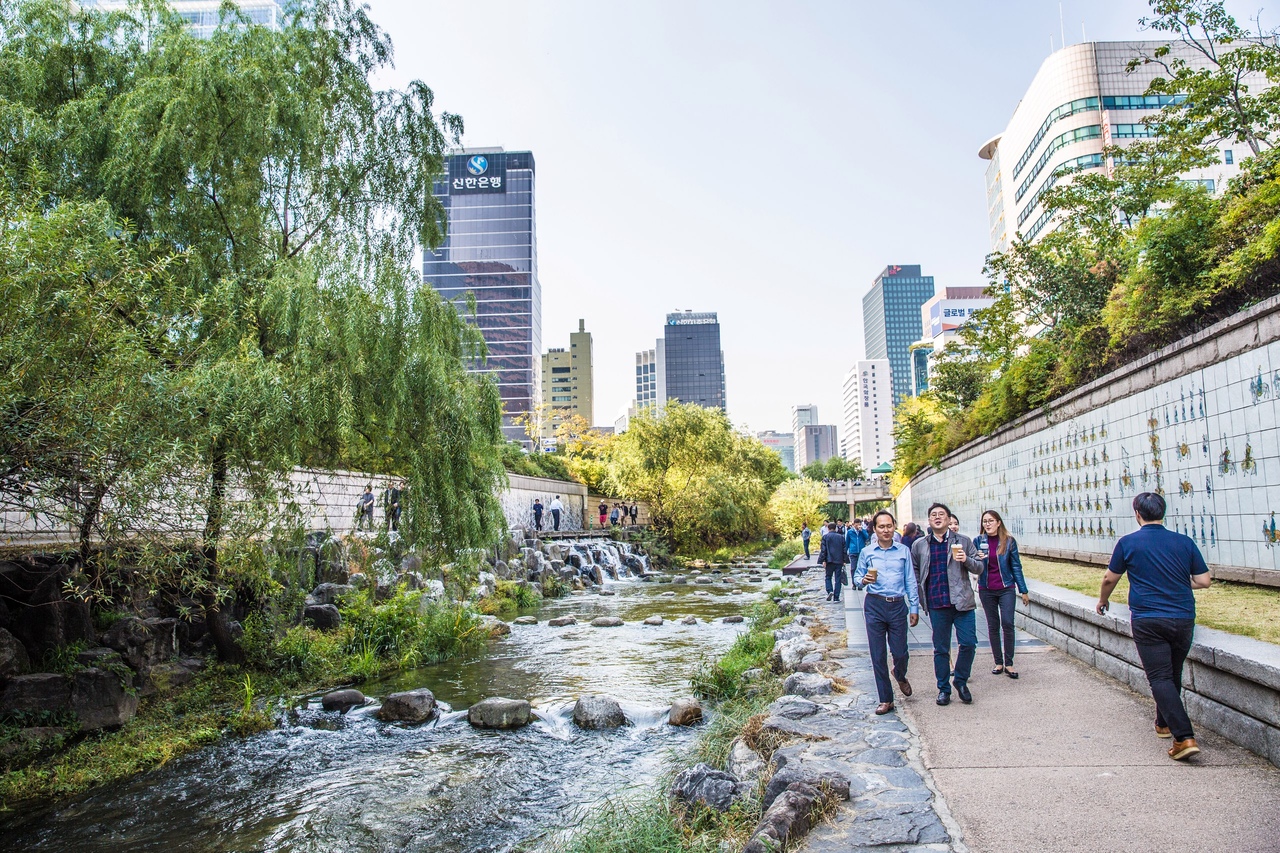Ещё меня поразила одна вещь. Оказавшись случайно в самом сердце делового района, я увидел там настоящий оазис. Декораторы стилизовали обычную городскую речку под дикую лесную реку с водопадами и лесной полосой, которая бежит среди небоскребов. Было очень интересно наблюдать бизнесменов со стаканчиками кофе в такой атмосфере, или как люди в деловых костюмах перепрыгивают с камня на камень, переходя реку по стилизованному мосту. Вот бы такой оазис в даунтаун Нью-Йорка или Москва-Сити.