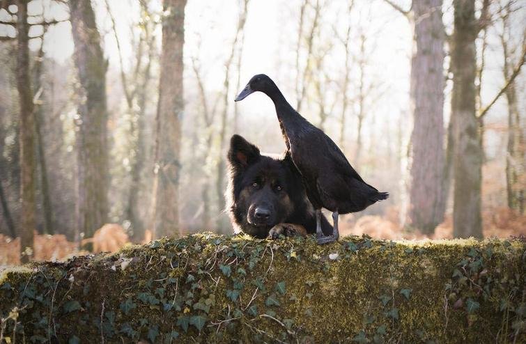 Лучшие друзья - немецкая овчарка и индийская утка, живущие во Франции8 फोटो