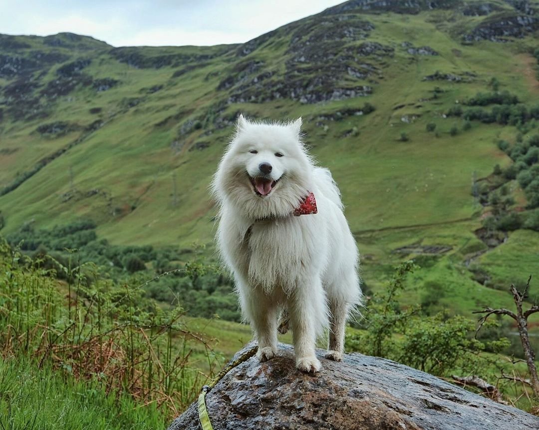 Счастливые самоеды, гуляющие по шотландским просторам